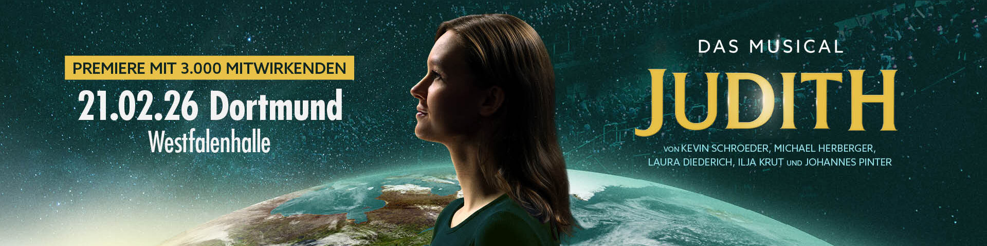 Ein musikalisches Großereignis feiert am Samstag, 21. Februar 2026, in der Westfalenhalle Dortmund Premiere: Das neue Chormusical „Judith und das Wunder der Schöpfung“ wird gleich zweimal aufgeführt – um 14 Uhr und um 19 Uhr.