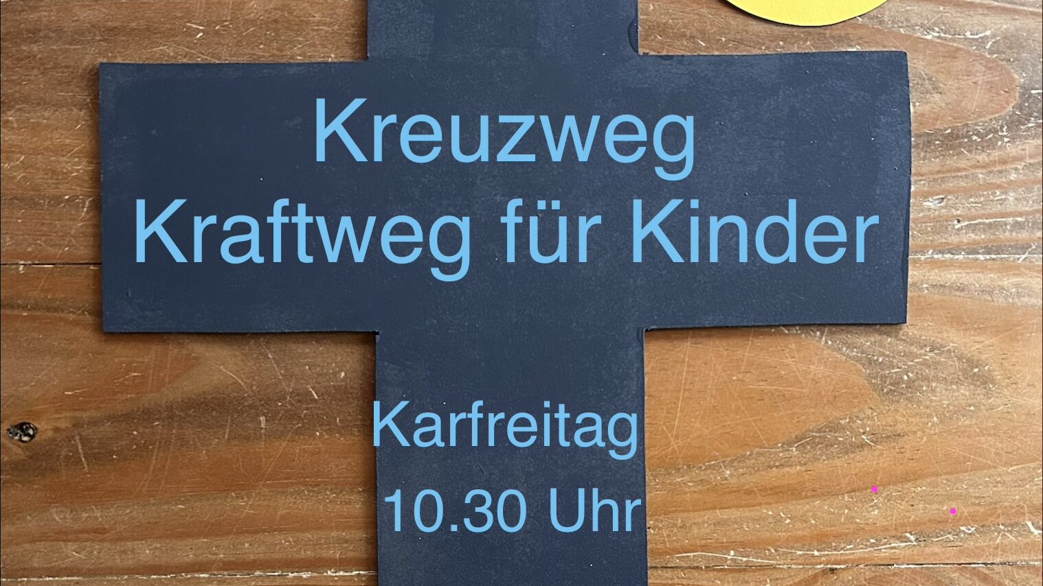 An Karfreitag sind um 10:30 Uhr alle Kinder zum Kinderkreuzweg in die Kirche Auferstehung Christi eingeladen. Die Kinder können kurze Texte vortragen, die sie vor Ort bekommen.