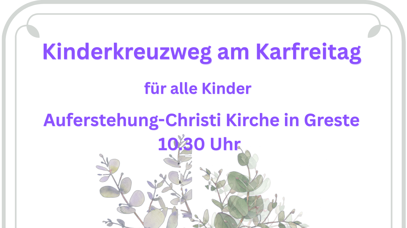 Wir laden alle Kinder und junge Familien am Karfreitag herzlich zu unseren Kinderkreuzwegandachten nach Greste und Bad Salzuflen ein!